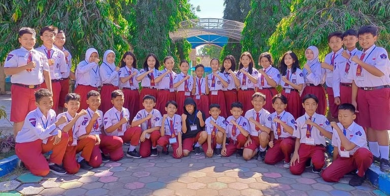 Momen belajar ceria dan penuh semangat siswa SD Indonesia.